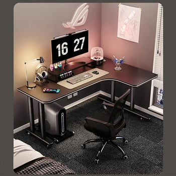 Tavolo da gioco per Computer di sicurezza con Design ad angolo arrotondato grande Desktop a forma di L nero E-sport